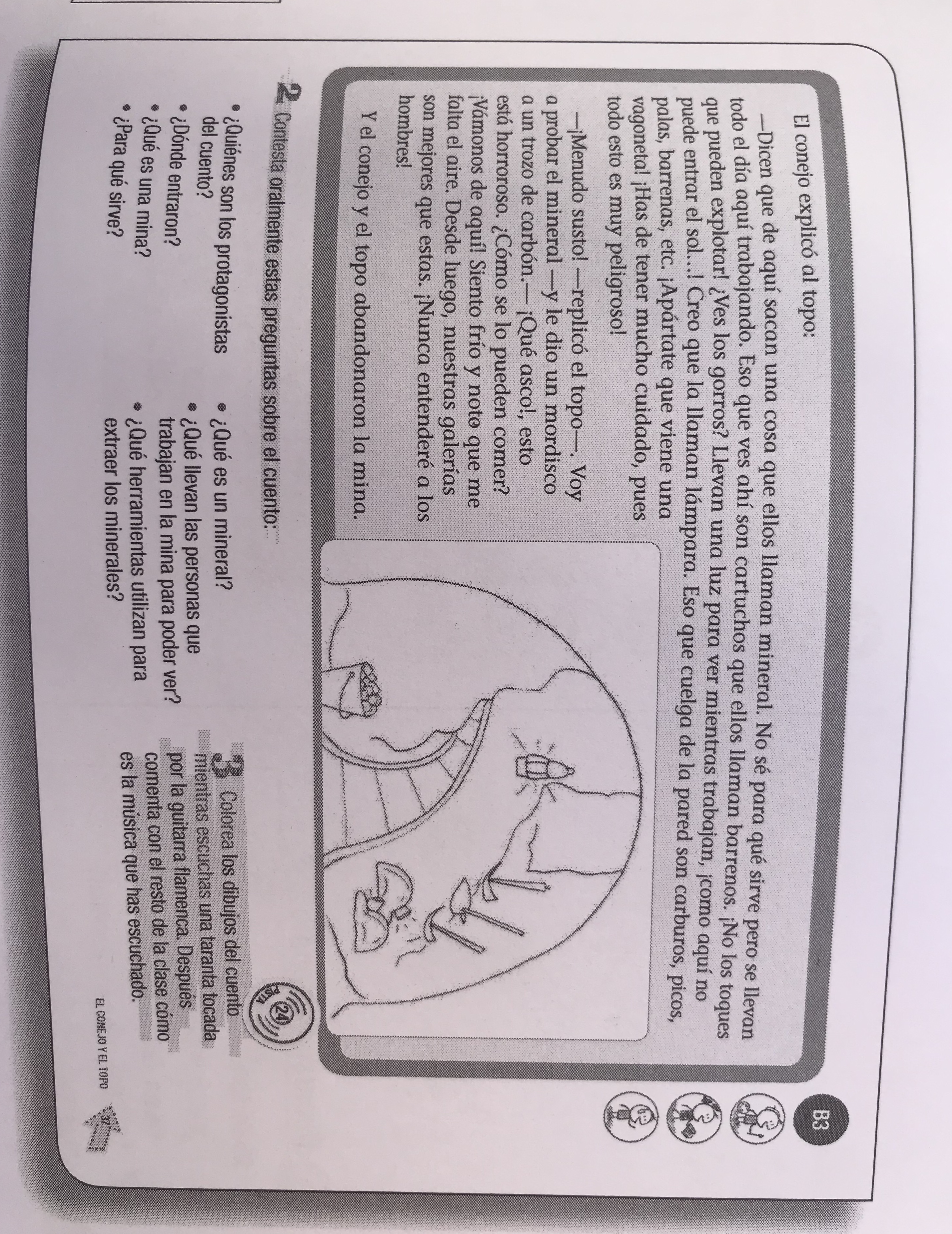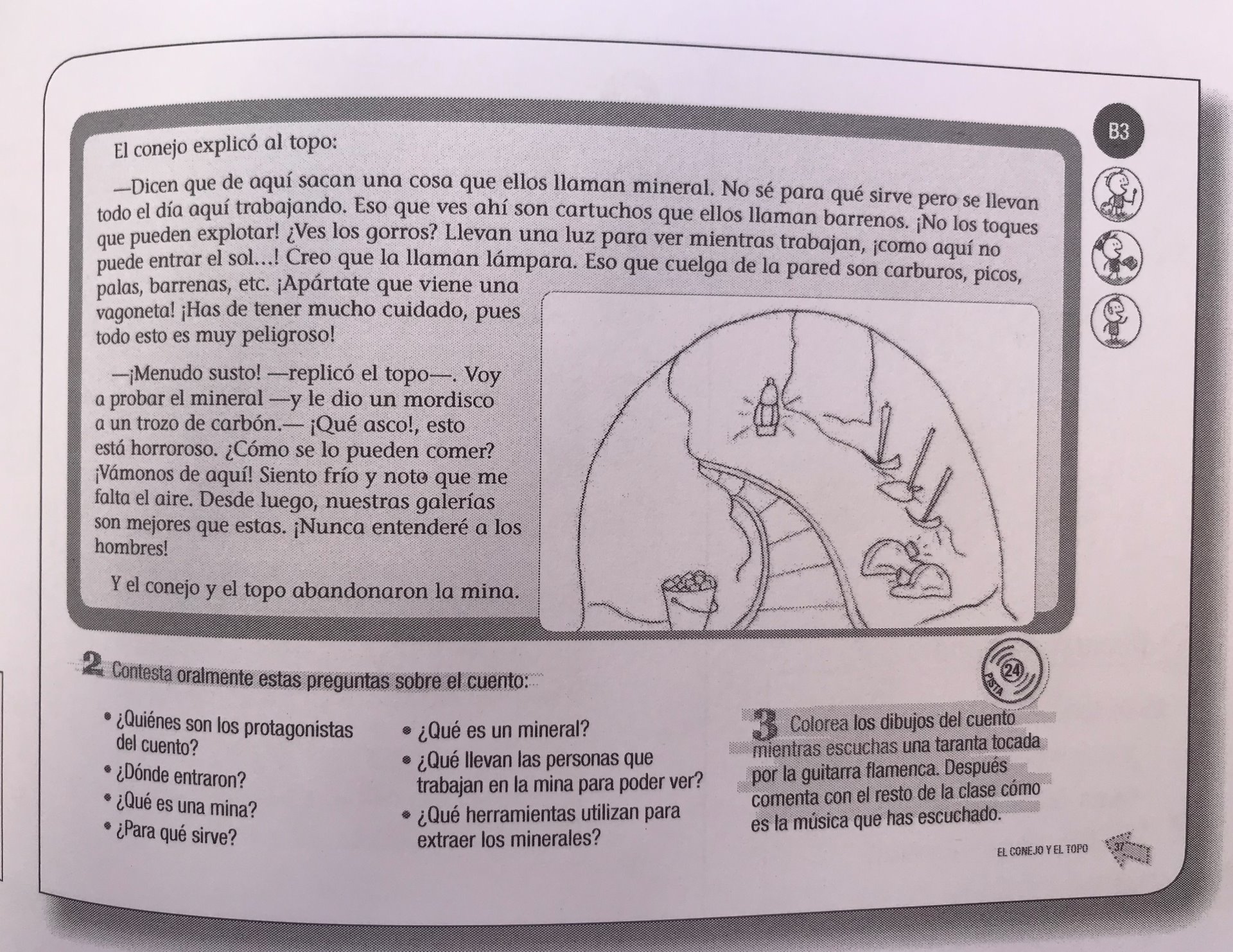 - 1. Lectura del cuento "El conejo y el topo" pág 36 - 37 del libro de música